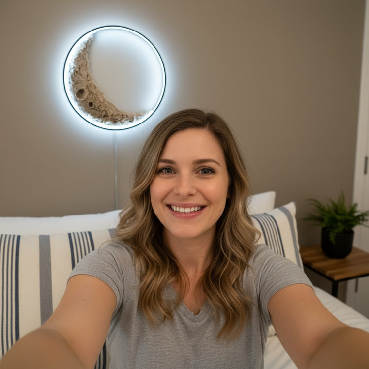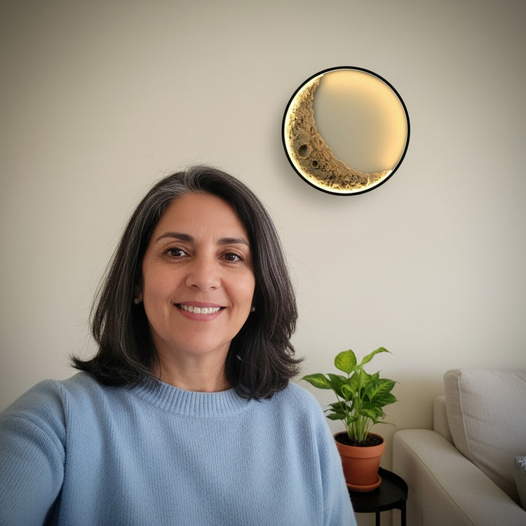 See how our Moon Wall Lamp transforms spaces with its textured lunar surface and adjustable color modes. From cozy bedroom corners to elegant patio walls, it effortlessly sets the mood.